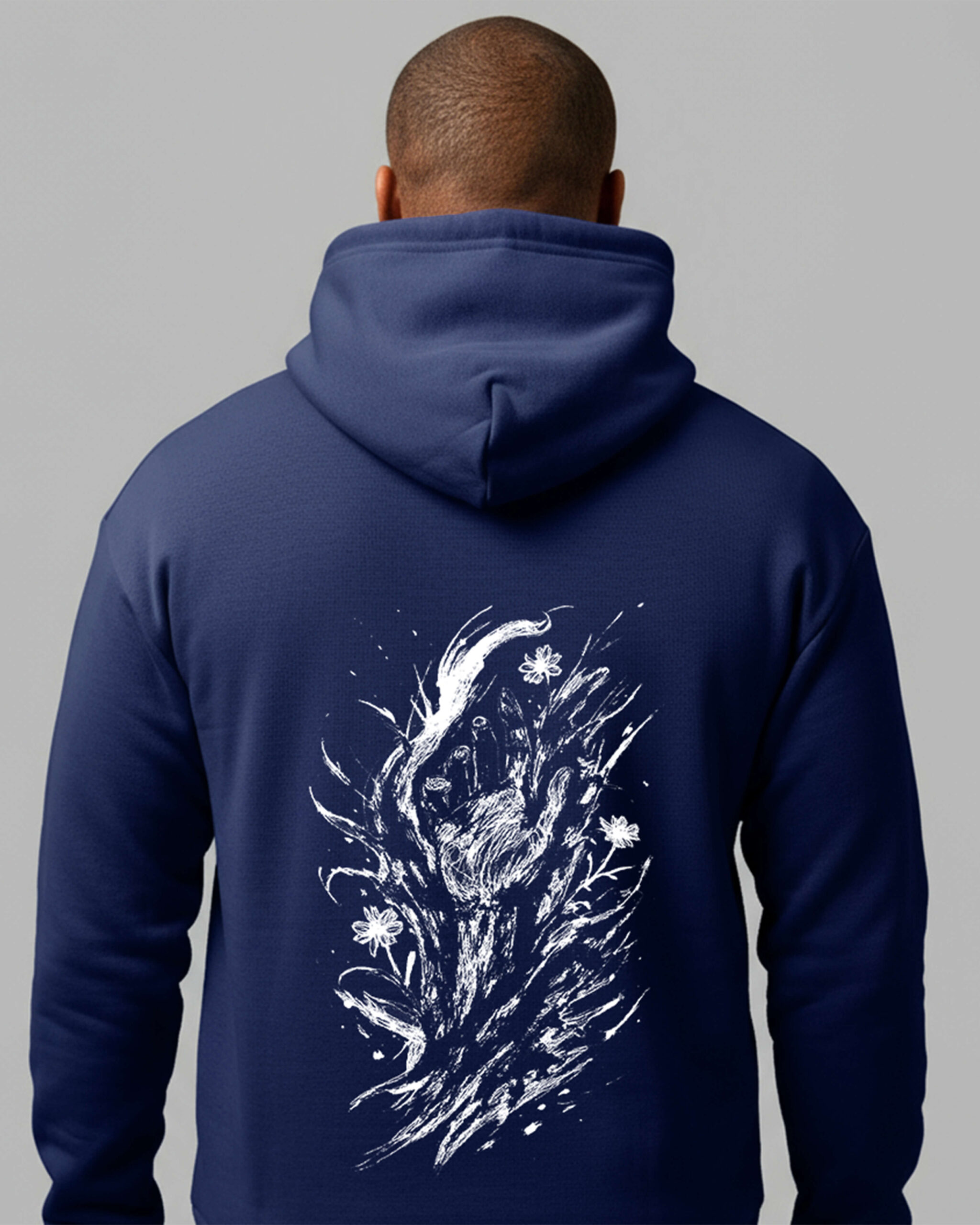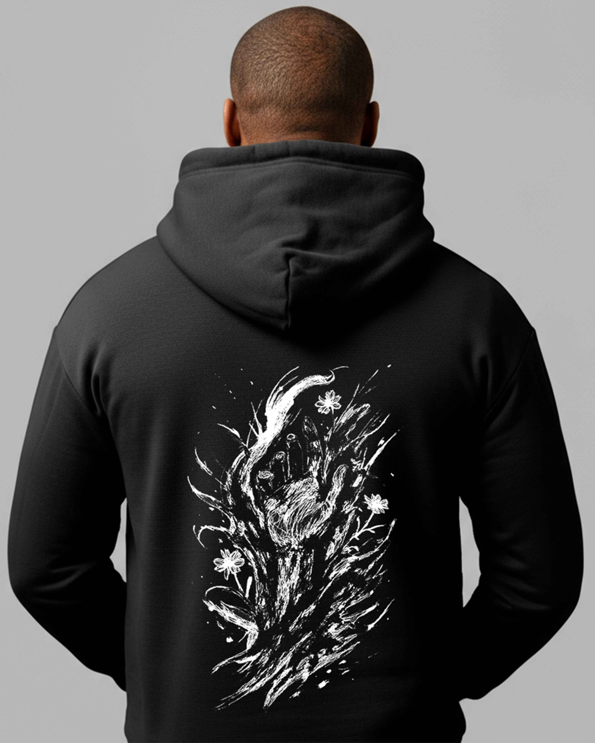 Artwork: Expressive hand emerging from abstract darkness with subtle flowers