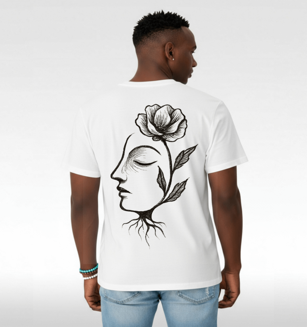 MINIMAL FACE WITH SINGLE FLOWER GROWING FROM CROWN