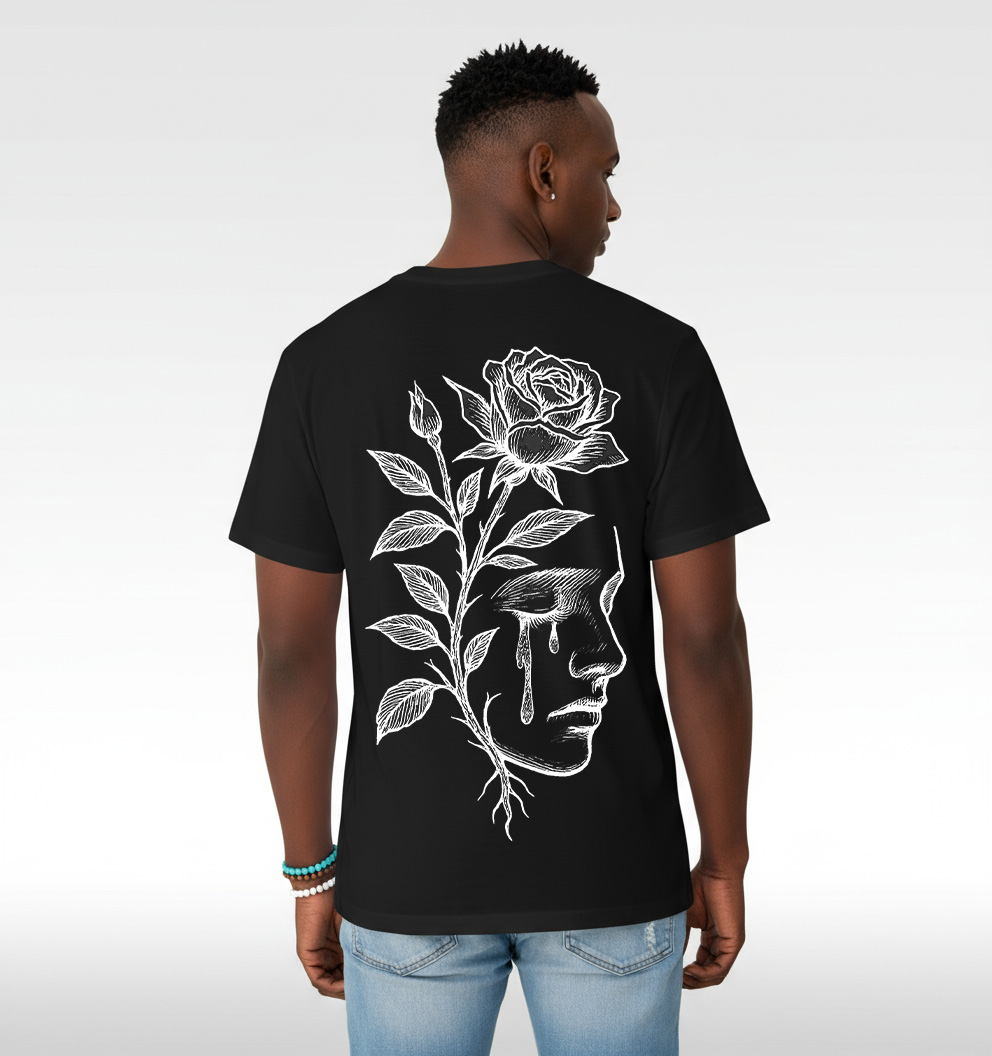 PROFILE FACE WITH ROSE STEM AND FALLING TEARS
